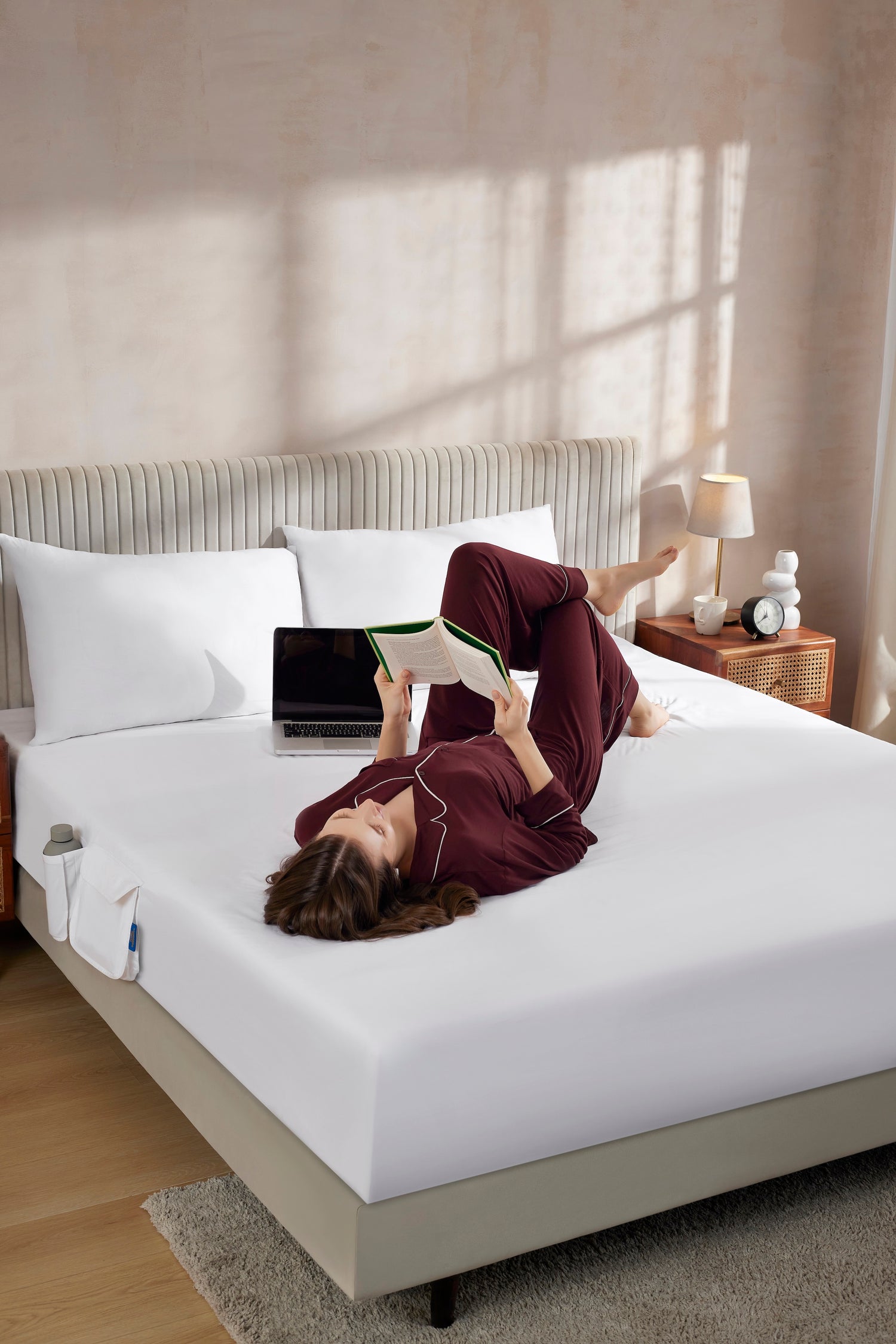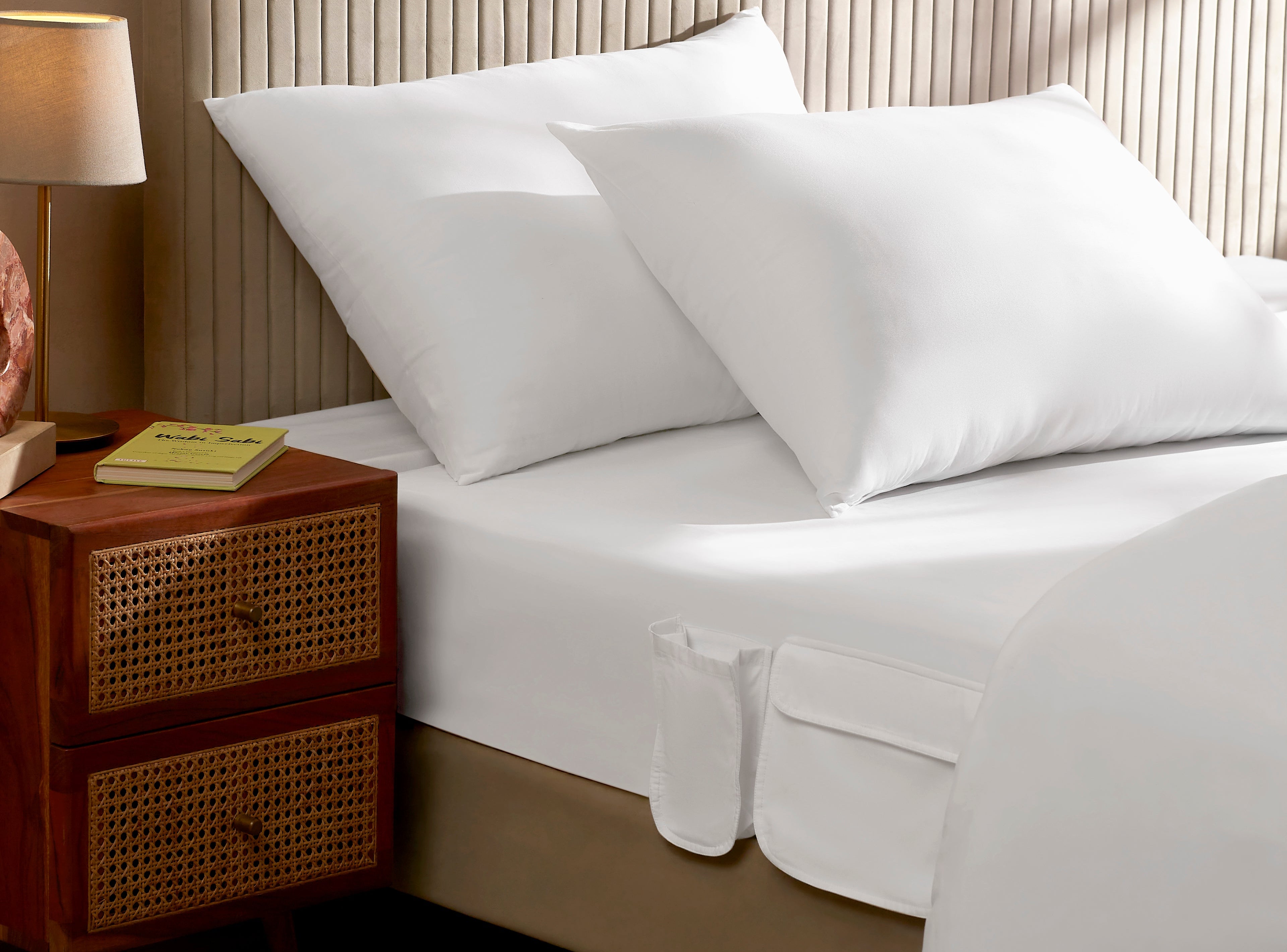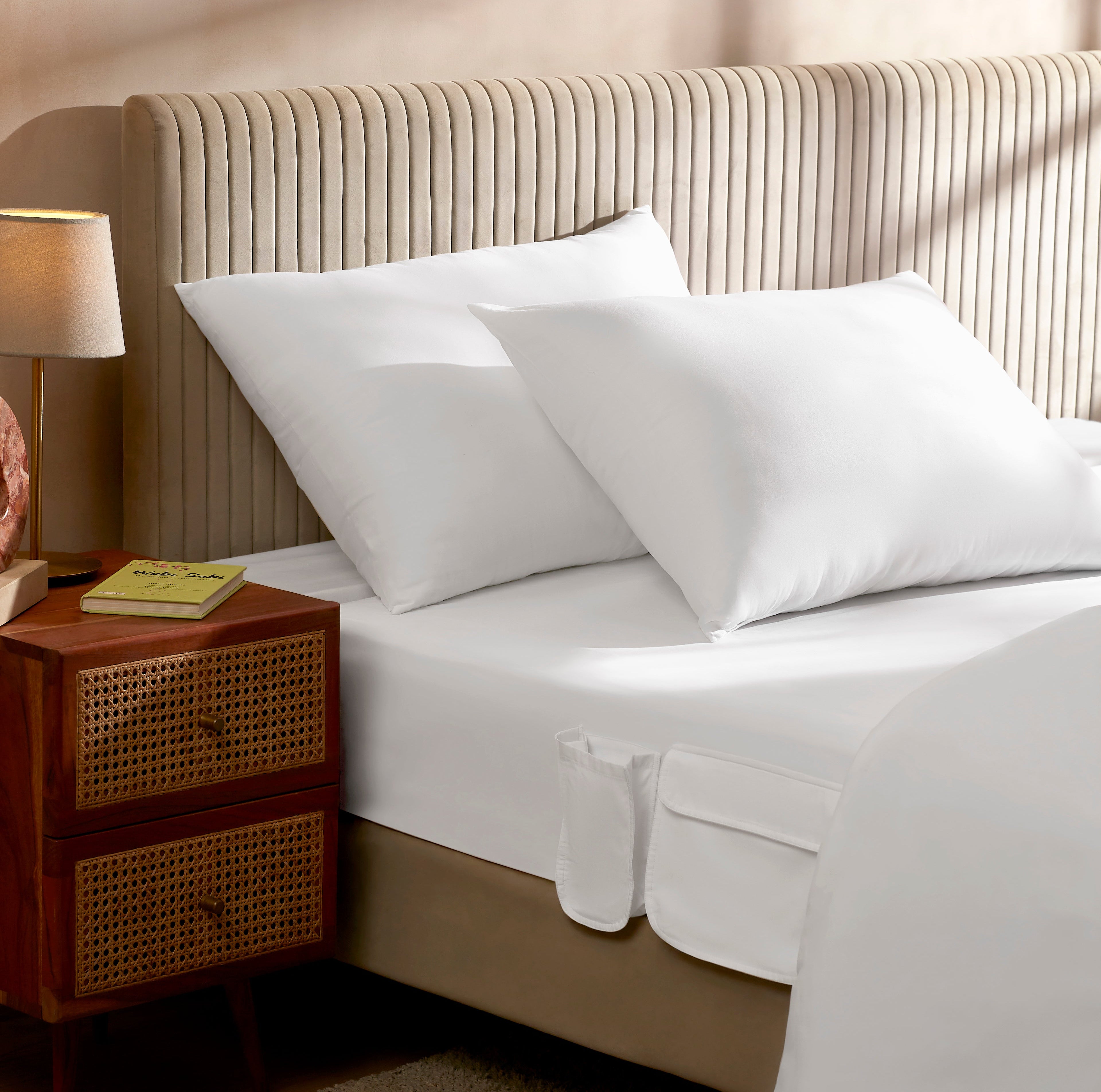 Sleep peacefully in luxury 100% organic cotton whilst all your nightly essentials at your fingertips.