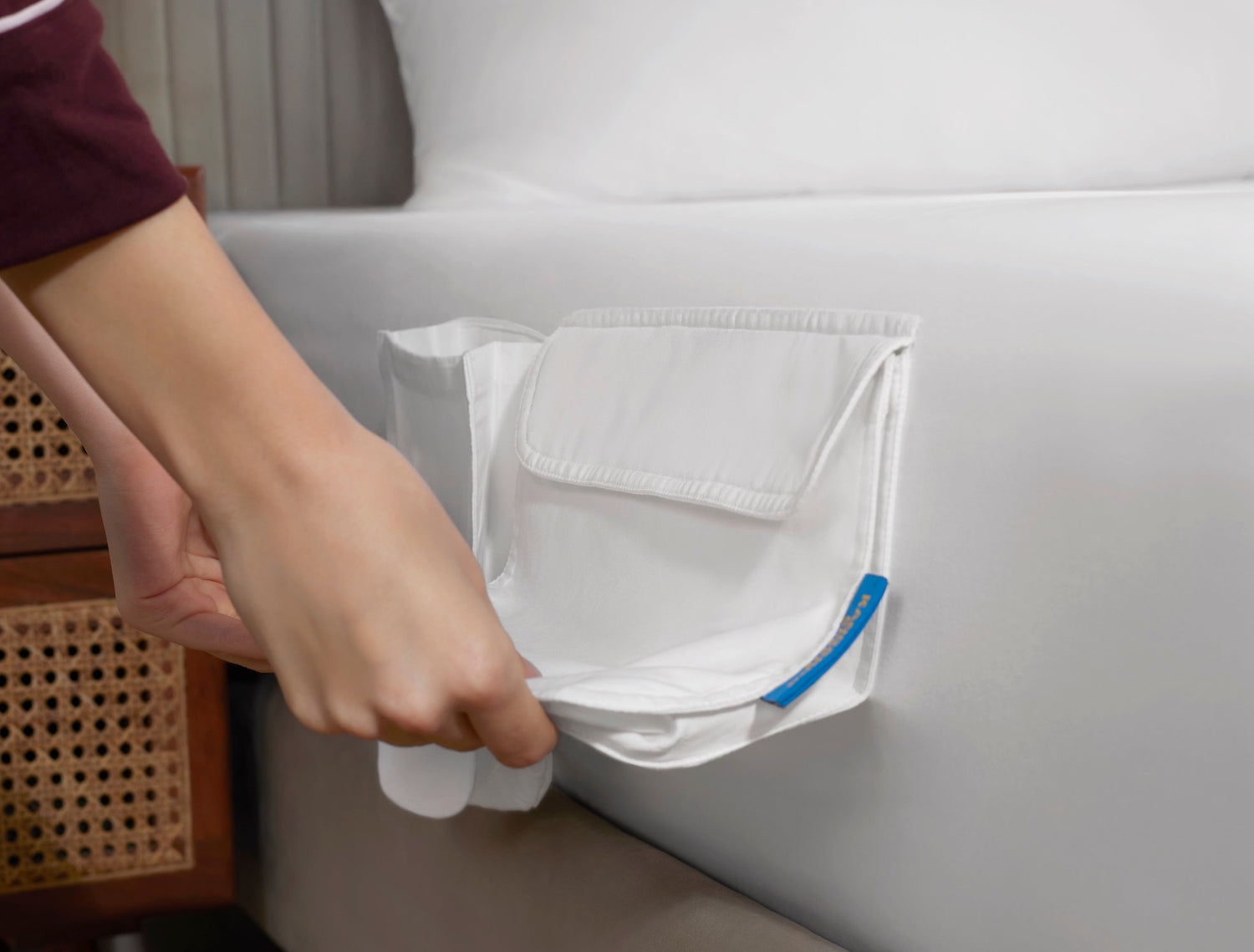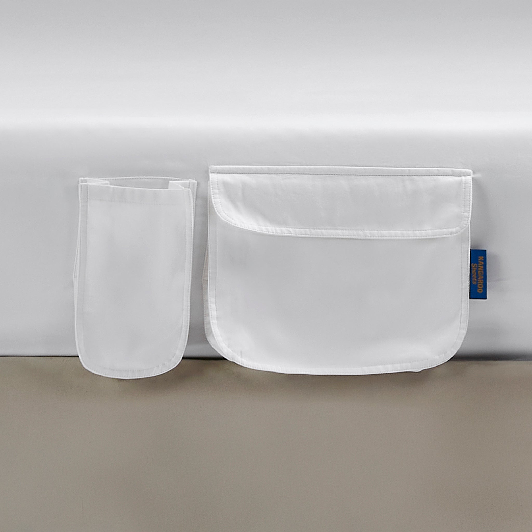 Our pocket hangs, not clings — meaning it fits every bed setup, from your childhood single to your adulting upgrade.